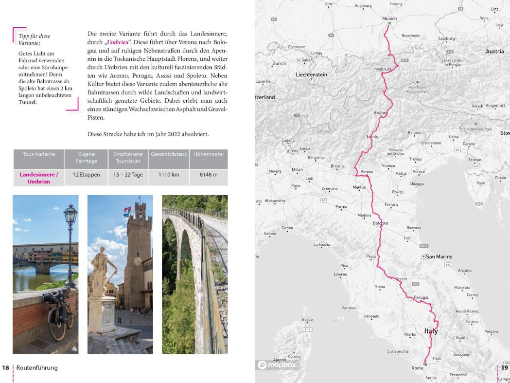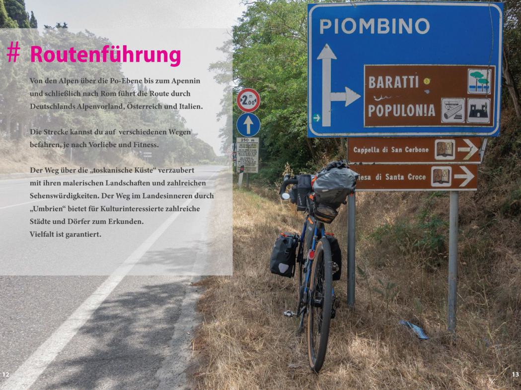 Der Süden, Italien, Rom - ein magnetischer Anziehungspunkt. Der Weg dorthin? Am besten mit dem Fahrrad. So verbindet man die Langsamkeit des Radfahrens mit intensiven Eindrücken der italienischen Kultur und Landschaft auf eine einzigartige und intensive Weise - hautnah und lebensecht.
